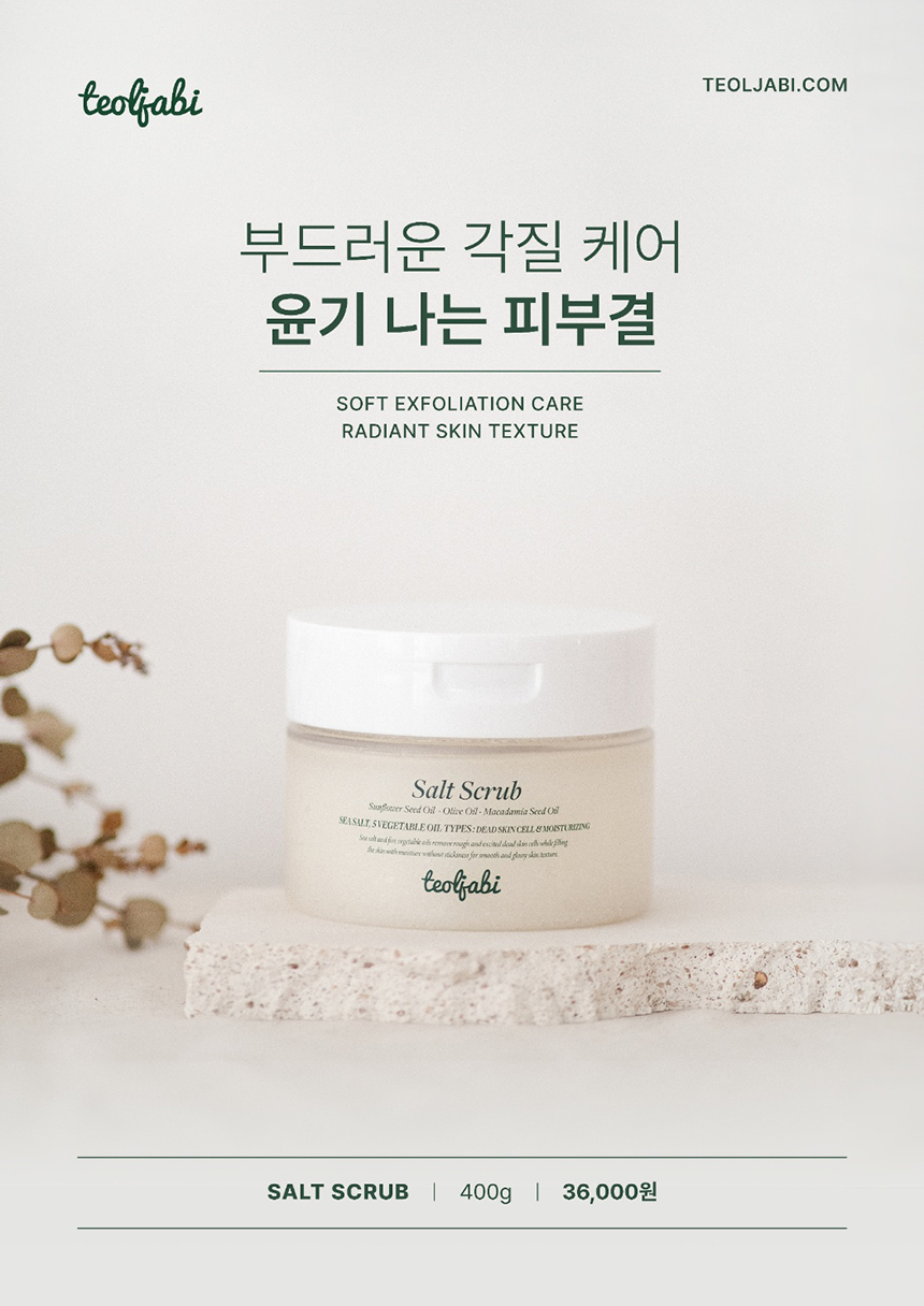 씨솔트와 5가지 식물성 오일이 거칠고 들뜬 각질을 제거함과 동시에 끈적임 없이 피부 수분감을 채워주며 매끄럽고 윤기나는 피부결로 가꾸어 줍니다.